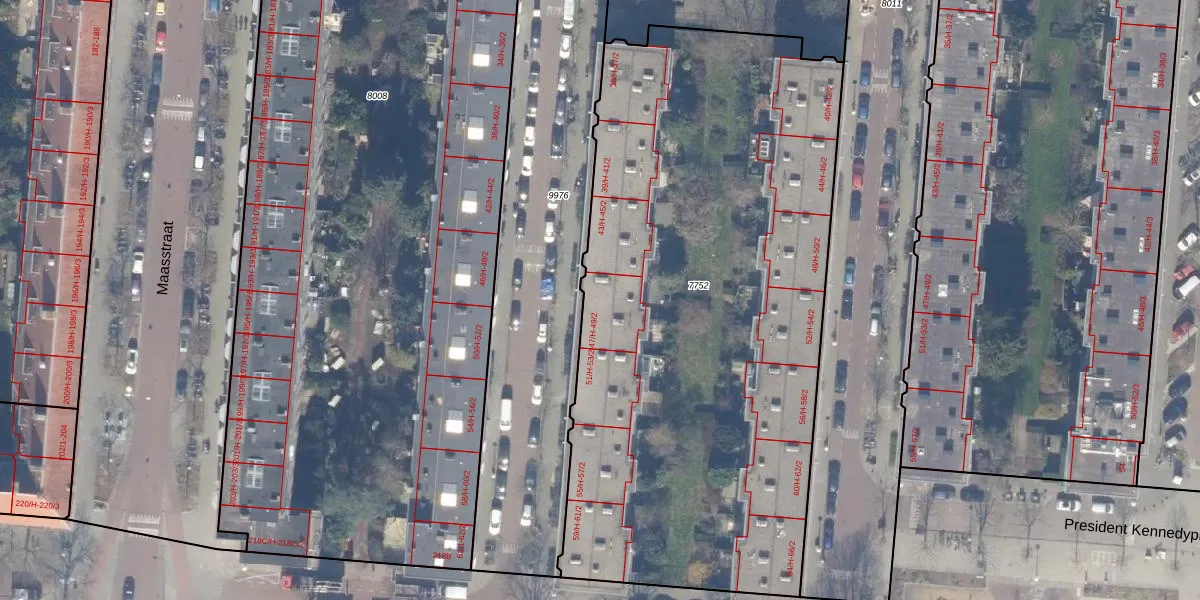 Het perceel waarop het adres ligt is ASD18-V-7752. De afkorting 'ASD18' staat voor kadastrale gemeente Amsterdam. Het perceel is met 3680 m² relatief groot. Het gemiddelde ligt in de kadastrale gemeente Amsterdam op 558,8 m². De grootste perceeloppervlakte in de kadastrale gemeente is 12,5 ha. De kleinste oppervlakte bedraagt 0 m². Op het perceel liggen in totaal 84 adressen. De huidige grenzen van het perceel zijn digitaal in de Basisregistratie Kadaster (BRK) geregistreerd op 09-03-2010.