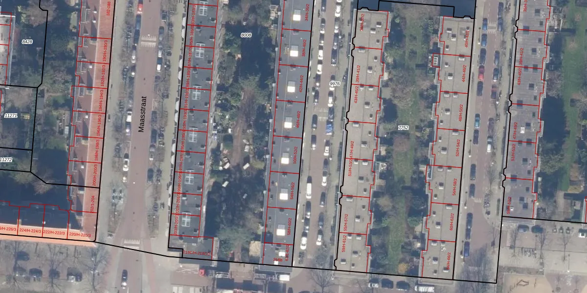 Het perceel waarop het adres ligt is ASD18-V-8008. De afkorting 'ASD18' staat voor kadastrale gemeente Amsterdam. Het perceel is met 6860 m² relatief groot. Het gemiddelde ligt in de kadastrale gemeente Amsterdam op 558,8 m². De grootste perceeloppervlakte in de kadastrale gemeente is 12,5 ha. De kleinste oppervlakte bedraagt 0 m². Er zijn 158 adressen aanwezig op het perceel. In de Basisregistratie Kadaster (BRK) werden de grenzen van het perceel geregistreerd op 09-03-2010.