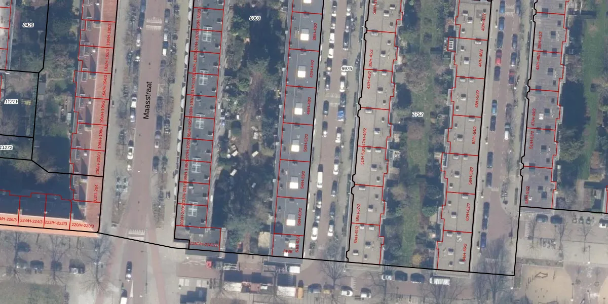 Het perceel waarop het adres ligt is ASD18-V-8008. De afkorting 'ASD18' staat voor kadastrale gemeente Amsterdam. Het perceel is met 6860 m² relatief groot. Het gemiddelde ligt in de kadastrale gemeente Amsterdam op 558,8 m². De grootste perceeloppervlakte in de kadastrale gemeente is 12,5 ha. De kleinste oppervlakte bedraagt 0 m². Er zijn 158 adressen aanwezig op het perceel. De laatste wijziging in het de Basisregistratie Kadaster (BRK) was op 09-03-2010.