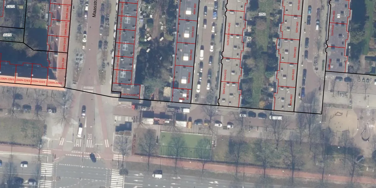 Het perceel waarop het adres ligt is ASD18-V-8008. De afkorting 'ASD18' staat voor kadastrale gemeente Amsterdam. Het perceel is met 6860 m² relatief groot. Het gemiddelde ligt in de kadastrale gemeente Amsterdam op 558,8 m². Het grootste perceel in de kadastrale gemeente is 12,5 ha. Het kleinste perceel heeft een oppervlakte van 0 m². Er zijn 158 adressen aanwezig op het perceel. De huidige grenzen van het perceel zijn digitaal in de Basisregistratie Kadaster (BRK) geregistreerd op 09-03-2010.