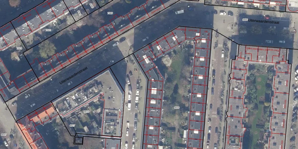 Het perceel waarop het adres ligt is ASD18-V-8009. De afkorting 'ASD18' staat voor kadastrale gemeente Amsterdam. Het perceel is met 4581 m² relatief groot. Het gemiddelde ligt in de kadastrale gemeente Amsterdam op 558,8 m². Het kleinste perceel in de kadastrale gemeente is 0 m² groot. De grootste perceeloppervlakte is 12,5 ha. Op het perceel zijn 122 adressen aanwezig. De huidige grenzen van het perceel zijn digitaal in de Basisregistratie Kadaster (BRK) geregistreerd op 08-12-2006.