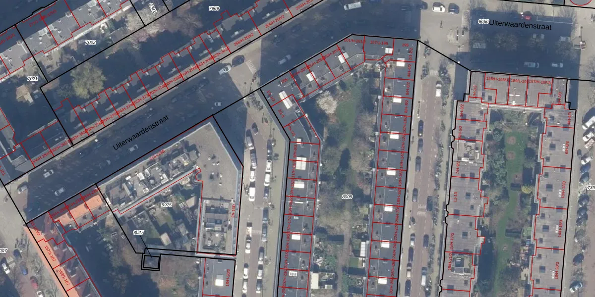 Het perceel waarop het adres ligt is ASD18-V-8009. De afkorting 'ASD18' staat voor kadastrale gemeente Amsterdam. Het perceel is met 4581 m² relatief groot. Het gemiddelde ligt in de kadastrale gemeente Amsterdam op 558,8 m². Het kleinste perceel in de kadastrale gemeente is 0 m² groot. De grootste perceeloppervlakte is 12,5 ha. Op het perceel zijn 122 adressen aanwezig. De huidige grenzen van het perceel zijn digitaal in de Basisregistratie Kadaster (BRK) geregistreerd op 08-12-2006.