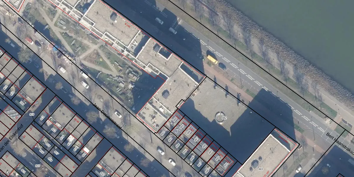 Het perceel waarop het adres ligt is ASD41-AU-881. De afkorting 'ASD41' staat voor kadastrale gemeente Amsterdam. Het perceel is 5022 m² groot. Dat is kleiner dan de gemiddelde perceeloppervlakte in Amsterdam, dat op 7296,83 m² ligt. Het kleinste perceel in de kadastrale gemeente is 0 m² groot. De grootste perceeloppervlakte is 2,75 km². Op het perceel zijn 110 adressen aanwezig. In de Basisregistratie Kadaster (BRK) werden de grenzen van het perceel geregistreerd op 10-02-2006.