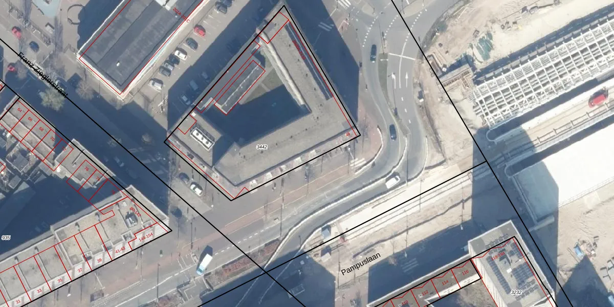 Het adres ligt op het perceel ASD41-AU-3442, dat zich in de kadastrale gemeente Amsterdam bevindt. De gemiddelde perceelgrootte in Amsterdam is 7285,32 m². Dit perceel is kleiner: de perceeloppervlakte bedraagt 2015 m². De grootste perceeloppervlakte in de kadastrale gemeente is 2,75 km². De kleinste oppervlakte bedraagt 0 m². Op het perceel liggen in totaal 60 adressen. De laatste wijziging in het de Basisregistratie Kadaster (BRK) was op 27-08-2015.
