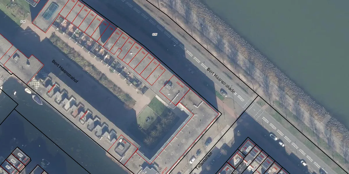 Bert Haanstrakade 222 is gelegen op kadastraal perceel ASD41AU634. Deze kadastrale aanduiding is uniek en wordt gebruikt door het Kadaster om eigendomsrechten en andere zakelijke rechten vast te leggen. Het perceel maakt onderdeel uit van de kadastrale gemeente Amsterdam.