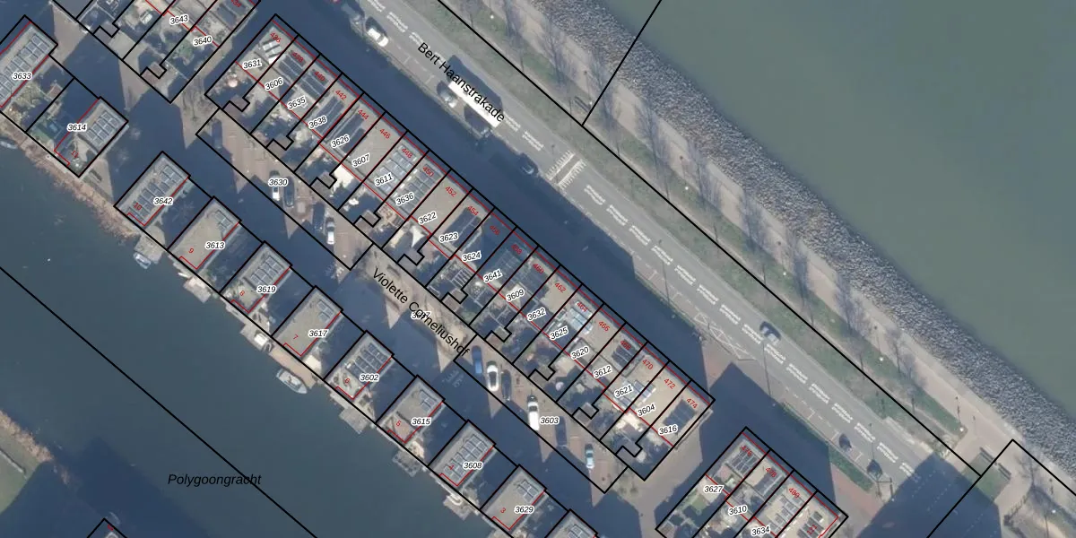 Gebruik de zoekbalk of klik op een perceel voor informatie over de adressen binnen dit perceel.