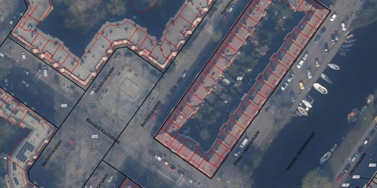 Bertelmanplein 1 is gelegen op kadastraal perceel ASD24AC567. Deze kadastrale aanduiding is uniek en wordt gebruikt door het Kadaster om eigendomsrechten en andere zakelijke rechten vast te leggen. Het perceel maakt onderdeel uit van de kadastrale gemeente Amsterdam.
