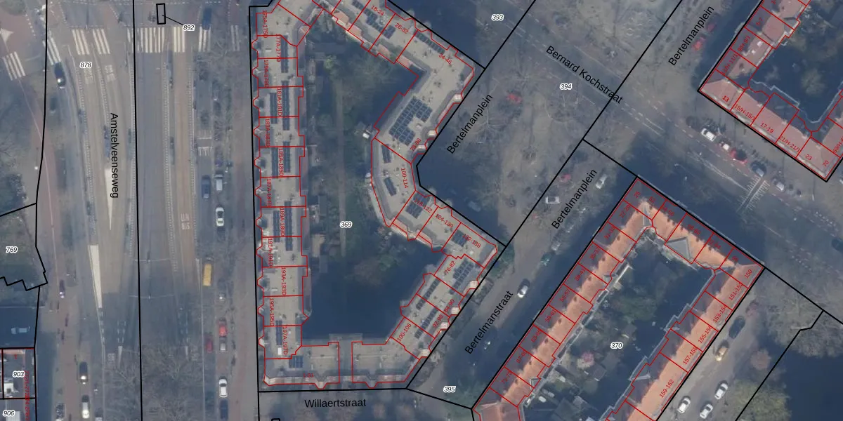 Bertelmanplein 116 is gelegen op kadastraal perceel ASD24AC369. Deze kadastrale aanduiding is uniek en wordt gebruikt door het Kadaster om eigendomsrechten en andere zakelijke rechten vast te leggen. Het perceel maakt onderdeel uit van de kadastrale gemeente Amsterdam.