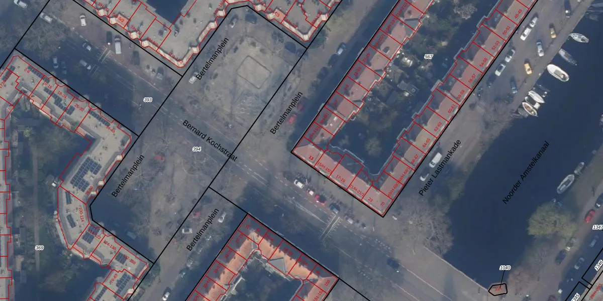 Bertelmanplein 13 is gelegen op kadastraal perceel ASD24AC567. Deze kadastrale aanduiding is uniek en wordt gebruikt door het Kadaster om eigendomsrechten en andere zakelijke rechten vast te leggen. Het perceel maakt onderdeel uit van de kadastrale gemeente Amsterdam.