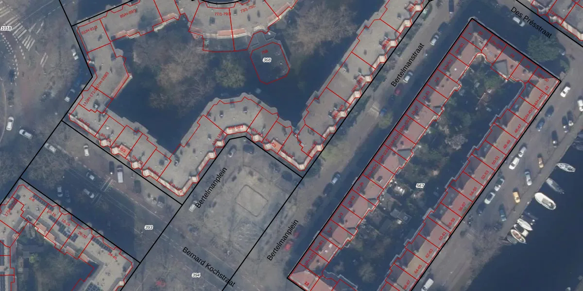 Bertelmanplein 2-2 is gelegen op kadastraal perceel ASD24AC368. Deze kadastrale aanduiding is uniek en wordt gebruikt door het Kadaster om eigendomsrechten en andere zakelijke rechten vast te leggen. Het perceel maakt onderdeel uit van de kadastrale gemeente Amsterdam.