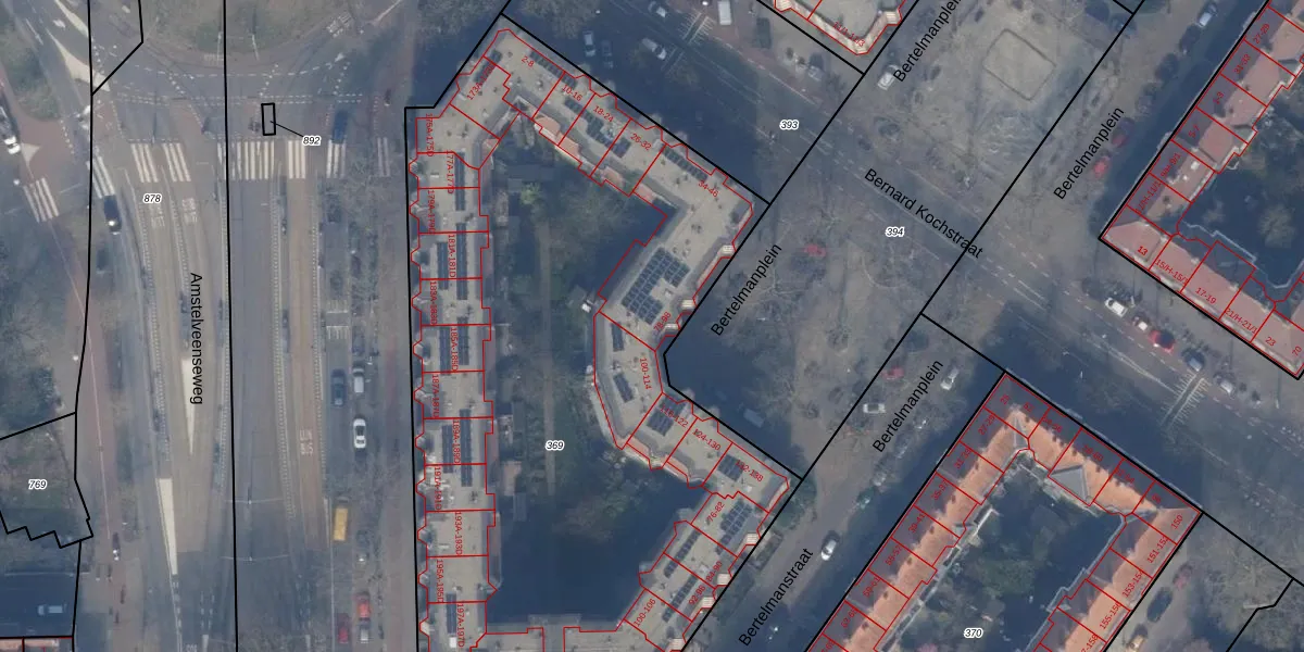 Bertelmanplein 98 is gelegen op kadastraal perceel ASD24AC369. Deze kadastrale aanduiding is uniek en wordt gebruikt door het Kadaster om eigendomsrechten en andere zakelijke rechten vast te leggen. Het perceel maakt onderdeel uit van de kadastrale gemeente Amsterdam.