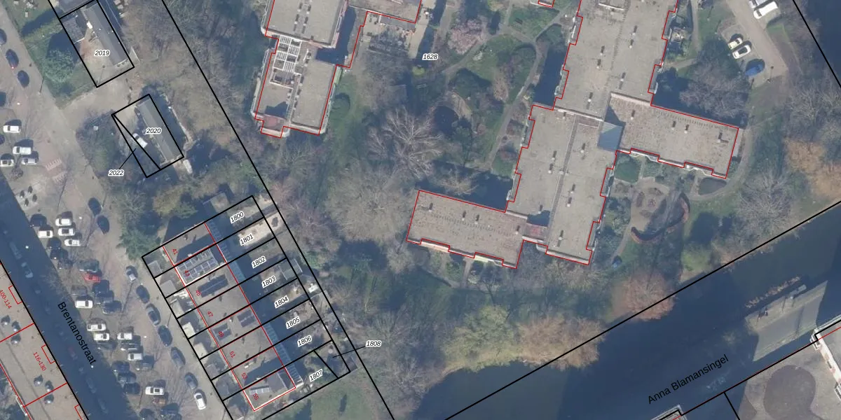 Het perceel waarop Berthold Brechtstraat 115 staat heeft een oppervlakte van 2,5 ha. Dit is een zeer groot perceel. De perceeloppervlakte wordt geregistreerd door het Kadaster. Gedetailleerde informatie over de maten van dit perceel kunt u vinden in het rapport Kadastrale kaart met maatvoering van Berthold Brechtstraat 115.