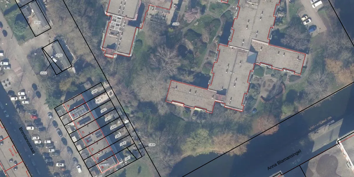 Het perceel waarop Berthold Brechtstraat 117 staat heeft een oppervlakte van 2,5 ha. Dit is een zeer groot perceel. De perceeloppervlakte wordt geregistreerd door het Kadaster. Gedetailleerde informatie over de maten van dit perceel kunt u vinden in het rapport Kadastrale kaart met maatvoering van Berthold Brechtstraat 117.