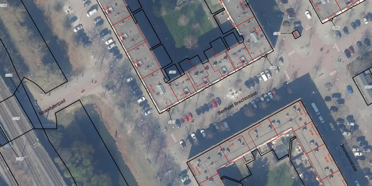 Berthold Brechtstraat 633 is gelegen op kadastraal perceel WPK02A1906. Deze kadastrale aanduiding is uniek en wordt gebruikt door het Kadaster om eigendomsrechten en andere zakelijke rechten vast te leggen. Het perceel maakt onderdeel uit van de kadastrale gemeente Weesperkarspel.