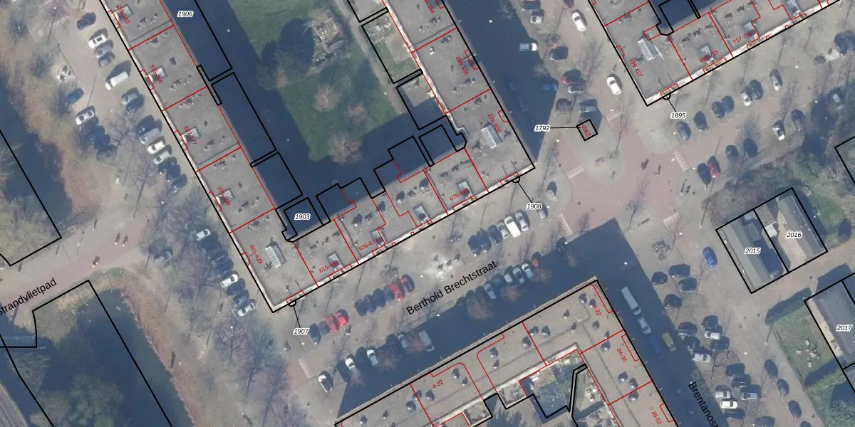 Het perceel waarop Berthold Brechtstraat 659 staat heeft een oppervlakte van 7205 m². Dit is een zeer groot perceel. De perceeloppervlakte wordt geregistreerd door het Kadaster. Gedetailleerde informatie over de maten van dit perceel kunt u vinden in het rapport Kadastrale kaart met maatvoering van Berthold Brechtstraat 659.