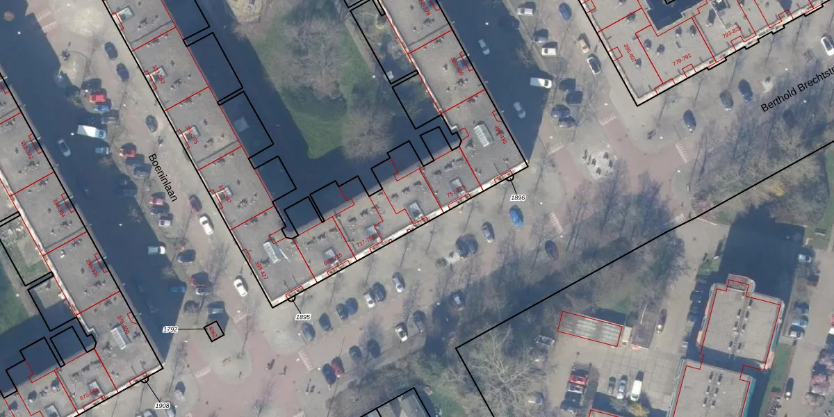 Het perceel waarop Berthold Brechtstraat 747 staat heeft een oppervlakte van 7220 m². Dit is een zeer groot perceel. De perceeloppervlakte wordt geregistreerd door het Kadaster. Gedetailleerde informatie over de maten van dit perceel kunt u vinden in het rapport Kadastrale kaart met maatvoering van Berthold Brechtstraat 747.
