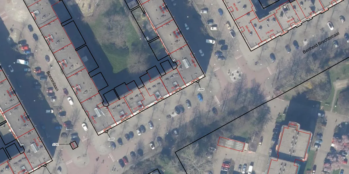 Het perceel waarop Berthold Brechtstraat 757 staat heeft een oppervlakte van 7220 m². Dit is een zeer groot perceel. De perceeloppervlakte wordt geregistreerd door het Kadaster. Gedetailleerde informatie over de maten van dit perceel kunt u vinden in het rapport Kadastrale kaart met maatvoering van Berthold Brechtstraat 757.