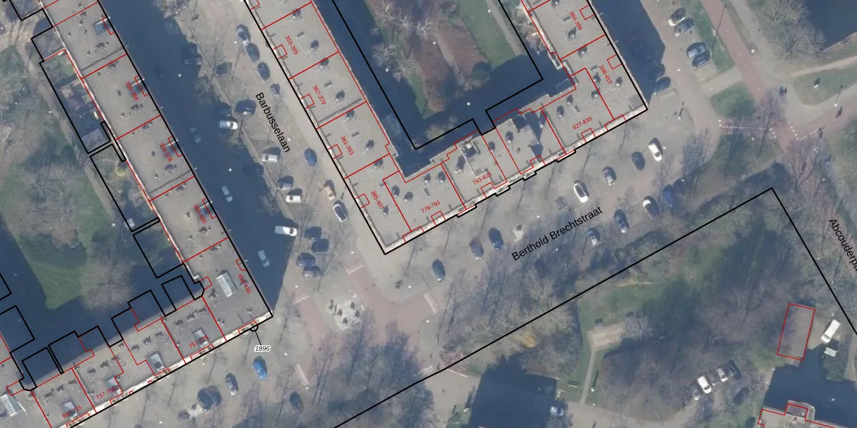 Het perceel waarop Berthold Brechtstraat 783 staat heeft een oppervlakte van 7357 m². Dit is een zeer groot perceel. De perceeloppervlakte wordt geregistreerd door het Kadaster. Gedetailleerde informatie over de maten van dit perceel kunt u vinden in het rapport Kadastrale kaart met maatvoering van Berthold Brechtstraat 783.