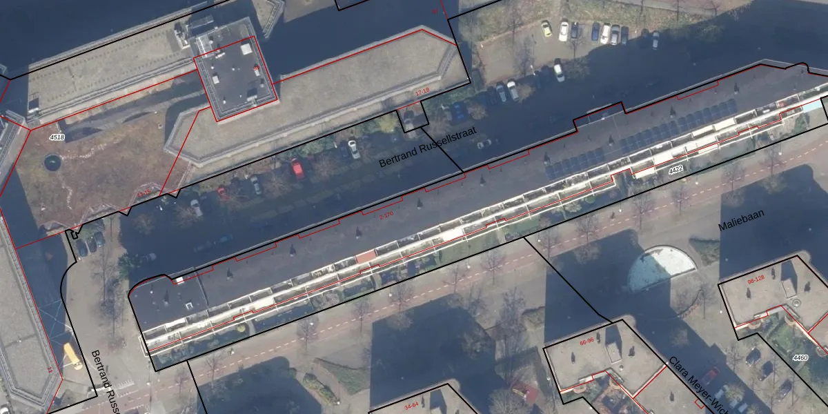 Het perceel waarop Bertrand Russellstraat 152 staat heeft een oppervlakte van 3380 m². Dit is een zeer groot perceel. De perceeloppervlakte wordt geregistreerd door het Kadaster. Gedetailleerde informatie over de maten van dit perceel kunt u vinden in het rapport Kadastrale kaart met maatvoering van Bertrand Russellstraat 152.