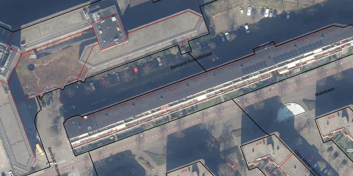 Bertrand Russellstraat 74 is gelegen op kadastraal perceel WTG02A4422. Deze kadastrale aanduiding is uniek en wordt gebruikt door het Kadaster om eigendomsrechten en andere zakelijke rechten vast te leggen. Het perceel maakt onderdeel uit van de kadastrale gemeente Watergraafsmeer.