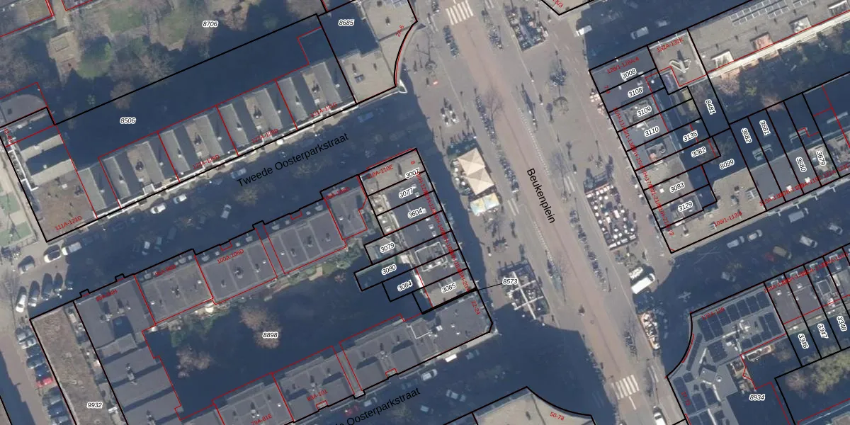 Het perceel waarop het adres ligt is ASD15-S-3604. De afkorting 'ASD15' staat voor kadastrale gemeente Amsterdam. Het perceel is 75 m² groot. Dat is kleiner dan de gemiddelde perceeloppervlakte in Amsterdam, dat op 537,06 m² ligt. De grootste perceeloppervlakte in de kadastrale gemeente is 14,5 ha. De kleinste oppervlakte bedraagt 0 m². Op het perceel zijn 4 adressen aanwezig. De huidige grenzen van het perceel zijn digitaal in de Basisregistratie Kadaster (BRK) geregistreerd op 17-11-2006.