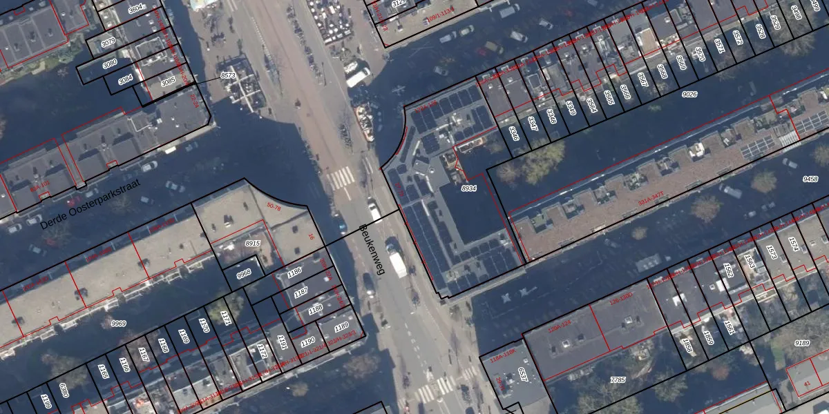 Het adres ligt op het perceel ASD15-S-8934, dat zich in de kadastrale gemeente Amsterdam bevindt. Het perceel is met 1067 m² relatief groot. Het gemiddelde ligt in de kadastrale gemeente Amsterdam op 537,06 m². Het kleinste perceel in de kadastrale gemeente is 0 m² groot. De grootste perceeloppervlakte is 14,5 ha. Op het perceel zijn 33 adressen aanwezig. De huidige grenzen van het perceel zijn digitaal in de Basisregistratie Kadaster (BRK) geregistreerd op 17-11-2006.