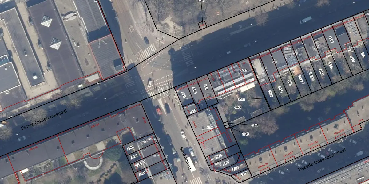 Het perceel waarop het adres ligt is ASD15-S-2806. De afkorting 'ASD15' staat voor kadastrale gemeente Amsterdam. Het perceel is kleiner dan gemiddeld in Amsterdam. Het perceel is 81 m² groot, terwijl het gemiddelde ligt op 537,06 m². Het grootste perceel in de kadastrale gemeente is 14,5 ha. Het kleinste perceel heeft een oppervlakte van 0 m². Op het perceel liggen in totaal 4 adressen. De huidige grenzen van het perceel zijn digitaal in de Basisregistratie Kadaster (BRK) geregistreerd op 17-11-2006.