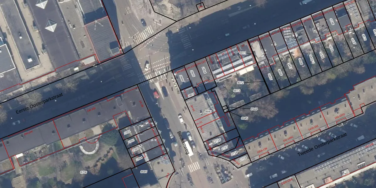 Het perceel waarop het adres ligt is ASD15-S-2807. De afkorting 'ASD15' staat voor kadastrale gemeente Amsterdam. Het perceel is kleiner dan gemiddeld in Amsterdam. Het perceel is 42 m² groot, terwijl het gemiddelde ligt op 537,06 m². Het grootste perceel in de kadastrale gemeente is 14,5 ha. Het kleinste perceel heeft een oppervlakte van 0 m². Op het perceel liggen in totaal 5 adressen. In de Basisregistratie Kadaster (BRK) werden de grenzen van het perceel geregistreerd op 17-11-2006.