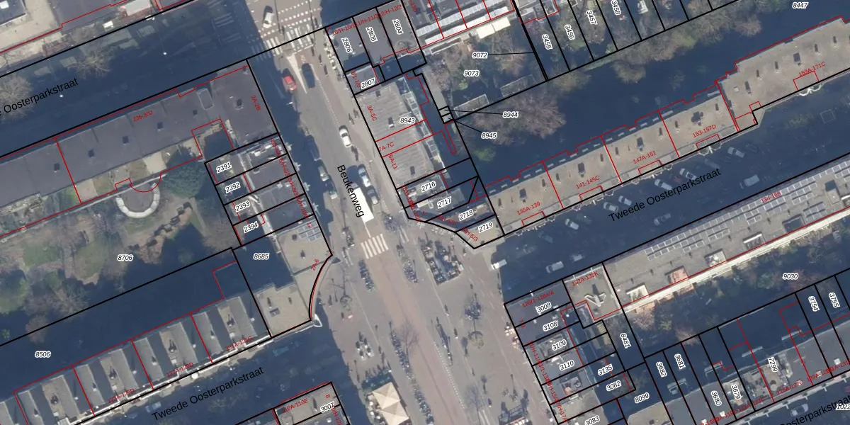 Het perceel waarop het adres ligt is ASD15-S-2717. De afkorting 'ASD15' staat voor kadastrale gemeente Amsterdam. Het perceel is kleiner dan gemiddeld in Amsterdam. Het perceel is 74 m² groot, terwijl het gemiddelde ligt op 537,06 m². Het grootste perceel in de kadastrale gemeente is 14,5 ha. Het kleinste perceel heeft een oppervlakte van 0 m². Op het perceel liggen in totaal 4 adressen. In de Basisregistratie Kadaster (BRK) werden de grenzen van het perceel geregistreerd op 17-11-2006.