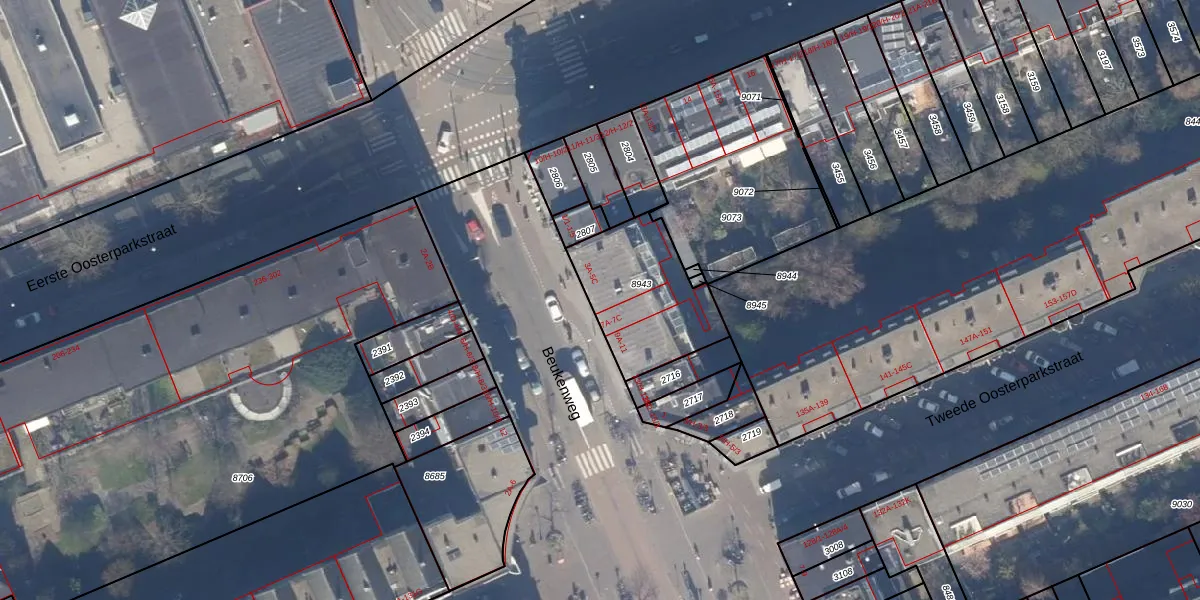 Het adres ligt op het perceel ASD15-S-8943, dat zich in de kadastrale gemeente Amsterdam bevindt. Het perceel is kleiner dan gemiddeld in Amsterdam. Het perceel is 431 m² groot, terwijl het gemiddelde ligt op 537,06 m². Het kleinste perceel in de kadastrale gemeente is 0 m² groot. De grootste perceeloppervlakte is 14,5 ha. Op het perceel zijn 14 adressen aanwezig. De laatste wijziging in het de Basisregistratie Kadaster (BRK) was op 17-11-2006.