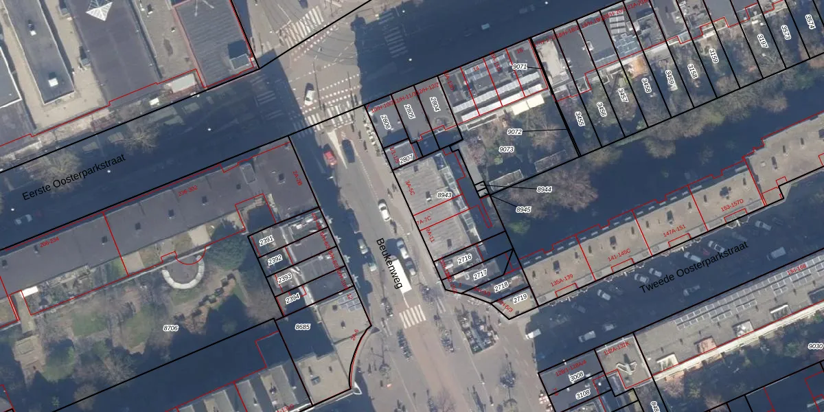 Het adres ligt op het perceel ASD15-S-8943, dat zich in de kadastrale gemeente Amsterdam bevindt. Het perceel is kleiner dan gemiddeld in Amsterdam. Het perceel is 431 m² groot, terwijl het gemiddelde ligt op 537,06 m². De grootste perceeloppervlakte in de kadastrale gemeente is 14,5 ha. De kleinste oppervlakte bedraagt 0 m². Op het perceel liggen in totaal 14 adressen. In de Basisregistratie Kadaster (BRK) werden de grenzen van het perceel geregistreerd op 17-11-2006.
