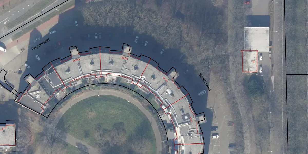 Het perceel waarop Beysterveld 119 staat heeft een oppervlakte van 4020 m². Dit is een zeer groot perceel. De perceeloppervlakte wordt geregistreerd door het Kadaster. Gedetailleerde informatie over de maten van dit perceel kunt u vinden in het rapport Kadastrale kaart met maatvoering van Beysterveld 119.