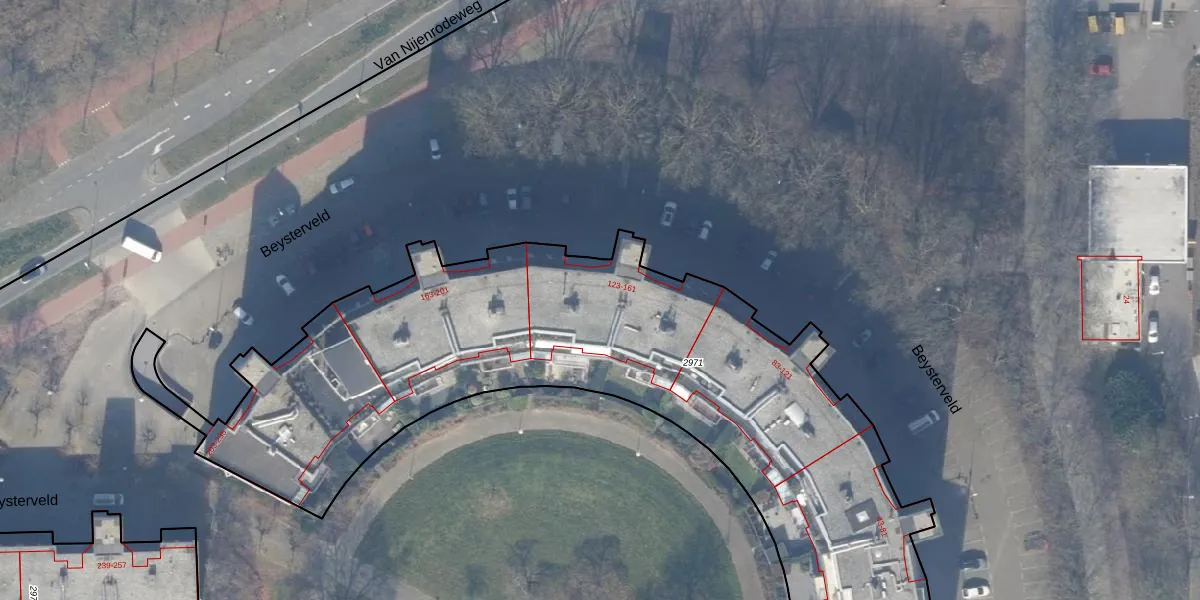 Het perceel waarop Beysterveld 149 staat heeft een oppervlakte van 4020 m². Dit is een zeer groot perceel. De perceeloppervlakte wordt geregistreerd door het Kadaster. Gedetailleerde informatie over de maten van dit perceel kunt u vinden in het rapport Kadastrale kaart met maatvoering van Beysterveld 149.