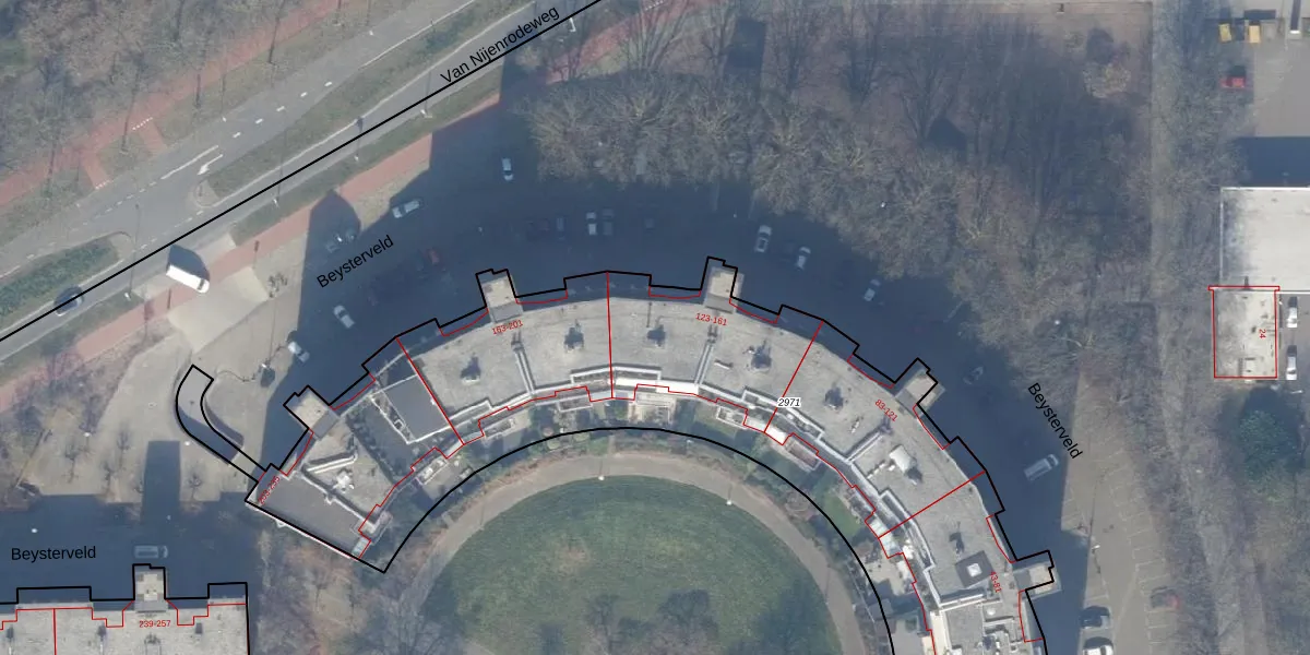 Beysterveld 161 is gelegen op kadastraal perceel ASD30AK2971. Deze kadastrale aanduiding is uniek en wordt gebruikt door het Kadaster om eigendomsrechten en andere zakelijke rechten vast te leggen. Het perceel maakt onderdeel uit van de kadastrale gemeente Amsterdam.
