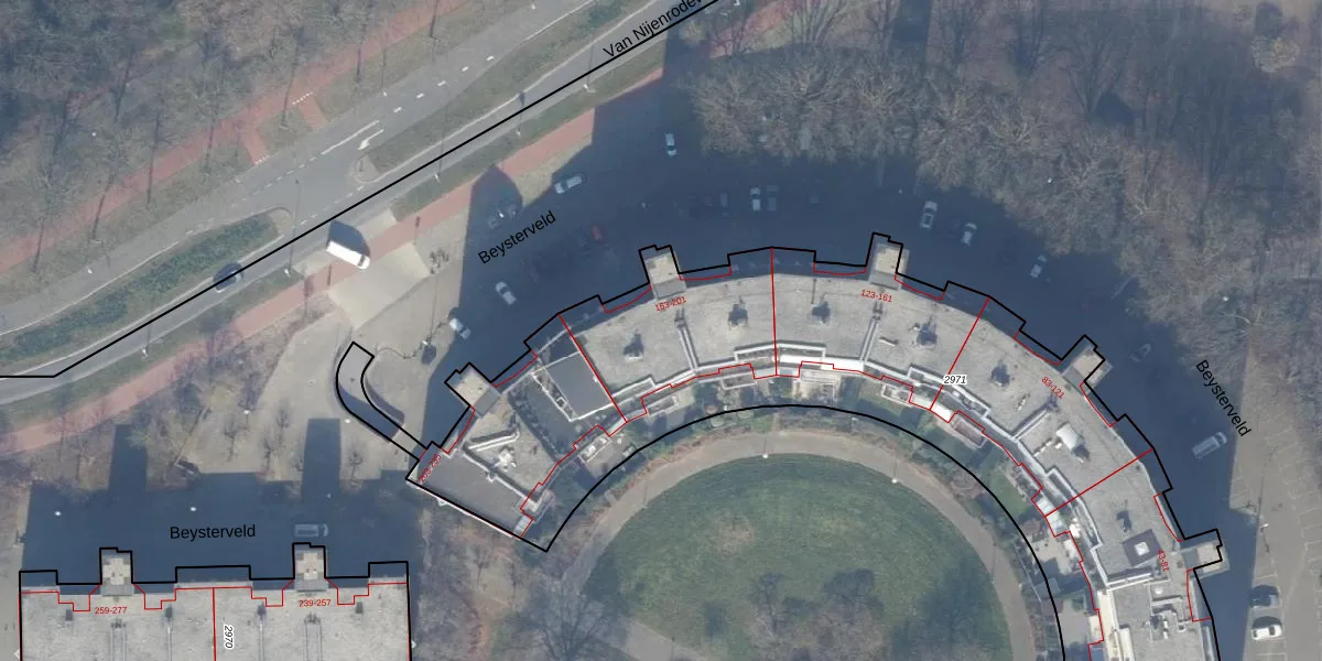 Beysterveld 185 is gelegen op kadastraal perceel ASD30AK2971. Deze kadastrale aanduiding is uniek en wordt gebruikt door het Kadaster om eigendomsrechten en andere zakelijke rechten vast te leggen. Het perceel maakt onderdeel uit van de kadastrale gemeente Amsterdam.