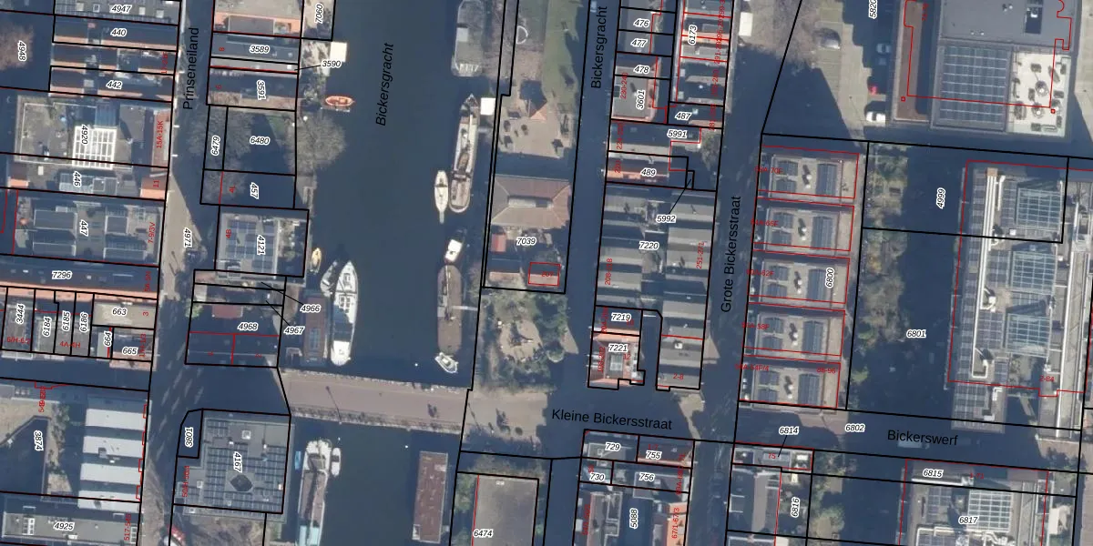 Het perceel waarop Bickersgracht 207 staat heeft een oppervlakte van 775 m². Dit is een groot perceel. De perceeloppervlakte wordt geregistreerd door het Kadaster. Gedetailleerde informatie over de maten van dit perceel kunt u vinden in het rapport Kadastrale kaart met maatvoering van Bickersgracht 207.