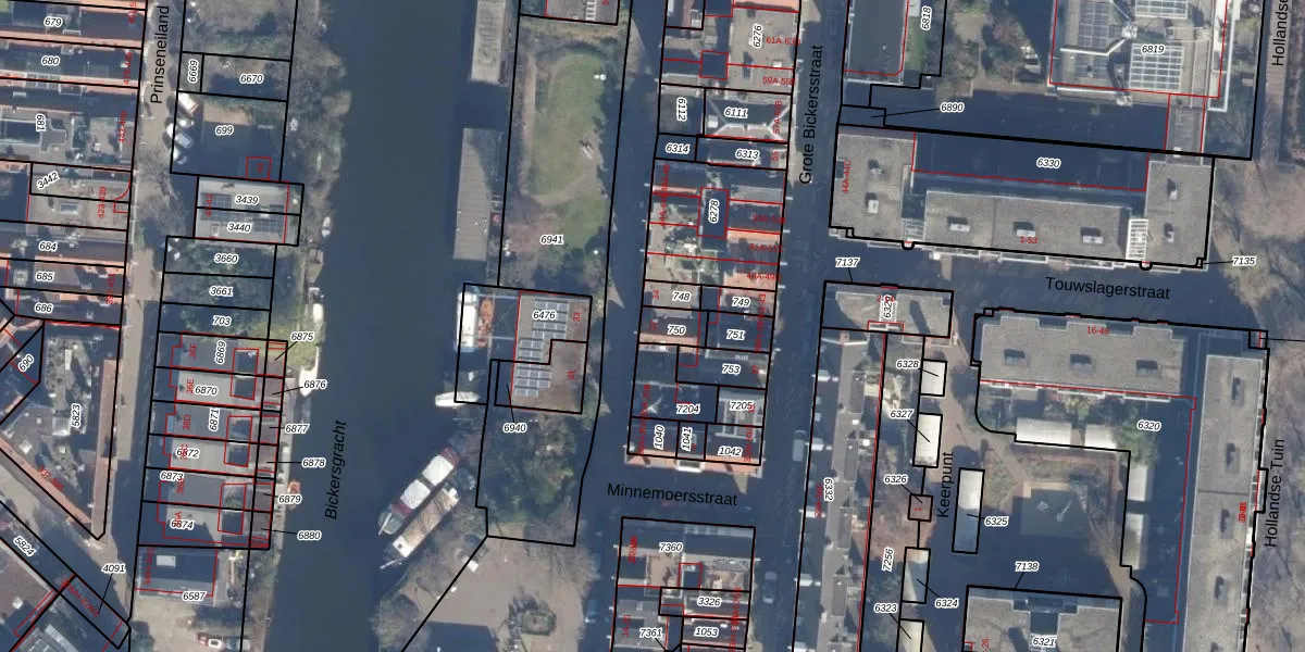 Het perceel waarop Bickersgracht 32 staat heeft een oppervlakte van 56 m². Dit is een klein perceel. De perceeloppervlakte wordt geregistreerd door het Kadaster. Gedetailleerde informatie over de maten van dit perceel kunt u vinden in het rapport Kadastrale kaart met maatvoering van Bickersgracht 32.
