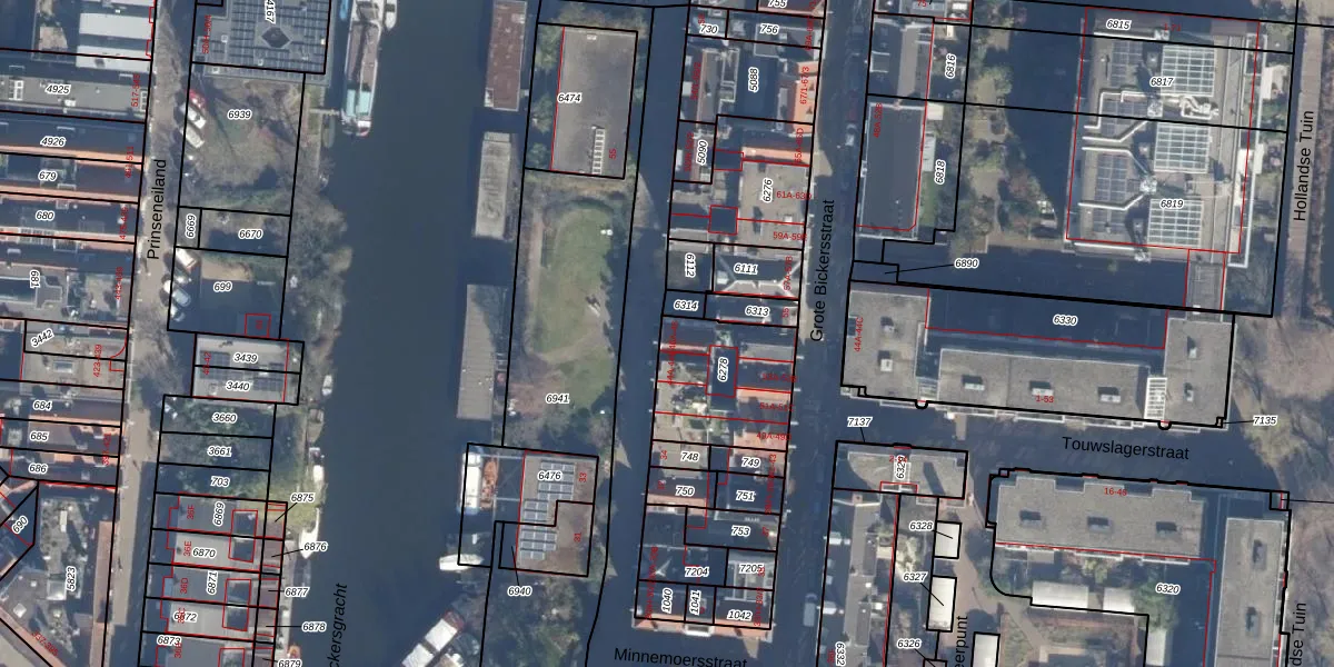 Het perceel waarop Bickersgracht 48 staat heeft een oppervlakte van 380 m². Dit is een groot perceel. De perceeloppervlakte wordt geregistreerd door het Kadaster. Gedetailleerde informatie over de maten van dit perceel kunt u vinden in het rapport Kadastrale kaart met maatvoering van Bickersgracht 48.