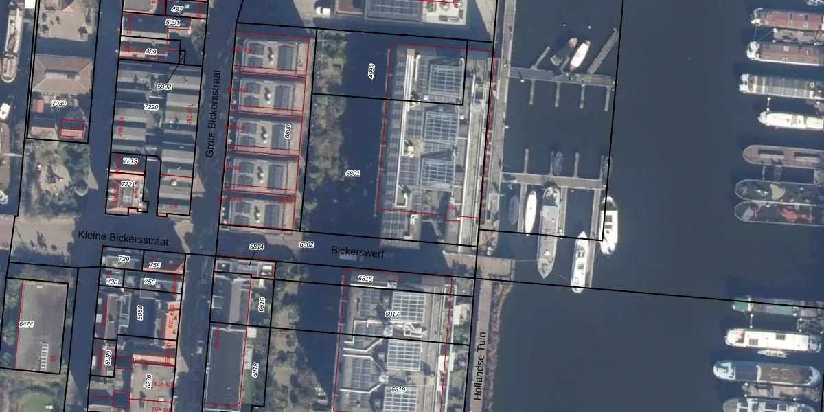 Het perceel waarop Bickerswerf 22 staat heeft een oppervlakte van 1550 m². Dit is een zeer groot perceel. De perceeloppervlakte wordt geregistreerd door het Kadaster. Gedetailleerde informatie over de maten van dit perceel kunt u vinden in het rapport Kadastrale kaart met maatvoering van Bickerswerf 22.