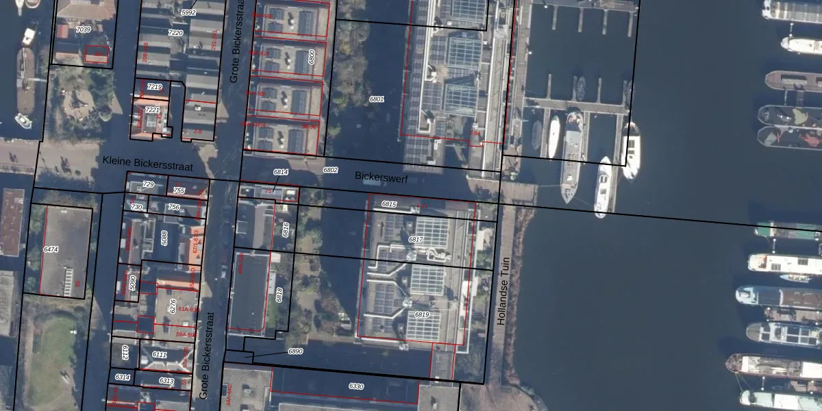 Het perceel waarop Bickerswerf 25 staat heeft een oppervlakte van 214 m². Dit is een middelgroot perceel. De perceeloppervlakte wordt geregistreerd door het Kadaster. Gedetailleerde informatie over de maten van dit perceel kunt u vinden in het rapport Kadastrale kaart met maatvoering van Bickerswerf 25.