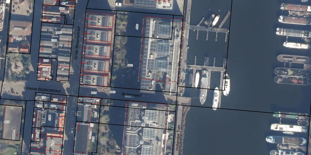 Het perceel waarop Bickerswerf 32 staat heeft een oppervlakte van 1550 m². Dit is een zeer groot perceel. De perceeloppervlakte wordt geregistreerd door het Kadaster. Gedetailleerde informatie over de maten van dit perceel kunt u vinden in het rapport Kadastrale kaart met maatvoering van Bickerswerf 32.