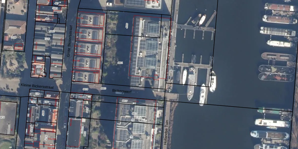 Het perceel waarop Bickerswerf 46 staat heeft een oppervlakte van 1550 m². Dit is een zeer groot perceel. De perceeloppervlakte wordt geregistreerd door het Kadaster. Gedetailleerde informatie over de maten van dit perceel kunt u vinden in het rapport Kadastrale kaart met maatvoering van Bickerswerf 46.