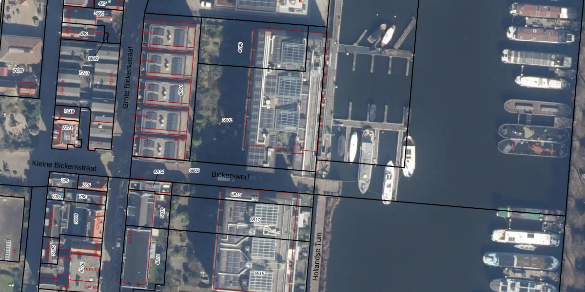 Het perceel waarop Bickerswerf 60 staat heeft een oppervlakte van 1550 m². Dit is een zeer groot perceel. De perceeloppervlakte wordt geregistreerd door het Kadaster. Gedetailleerde informatie over de maten van dit perceel kunt u vinden in het rapport Kadastrale kaart met maatvoering van Bickerswerf 60.