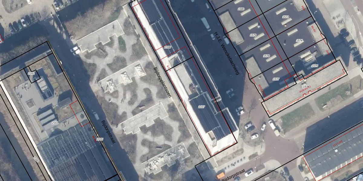 Het adres is gelegen op perceel 2107 in de sectie AG en de kadastrale gemeente Amsterdam. De kadastrale aanduiding is aldus ASD27-AG-2107. Het perceel is kleiner dan gemiddeld in Amsterdam. Het perceel is 915 m² groot, terwijl het gemiddelde ligt op 3544,61 m². Het grootste perceel in de kadastrale gemeente is 18,4 ha. Het kleinste perceel heeft een oppervlakte van 1 m². Op het perceel zijn 281 adressen aanwezig. De laatste wijziging in het de Basisregistratie Kadaster (BRK) was op 02-01-2025.