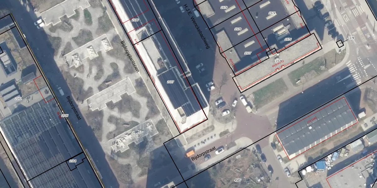 Het adres is gelegen op perceel 2107 in de sectie AG en de kadastrale gemeente Amsterdam. De kadastrale aanduiding is aldus ASD27-AG-2107. Het perceel is kleiner dan gemiddeld in Amsterdam. Het perceel is 915 m² groot, terwijl het gemiddelde ligt op 3544,61 m². Het grootste perceel in de kadastrale gemeente is 18,4 ha. Het kleinste perceel heeft een oppervlakte van 1 m². Op het perceel liggen in totaal 281 adressen. De laatste wijziging in het de Basisregistratie Kadaster (BRK) was op 02-01-2025.