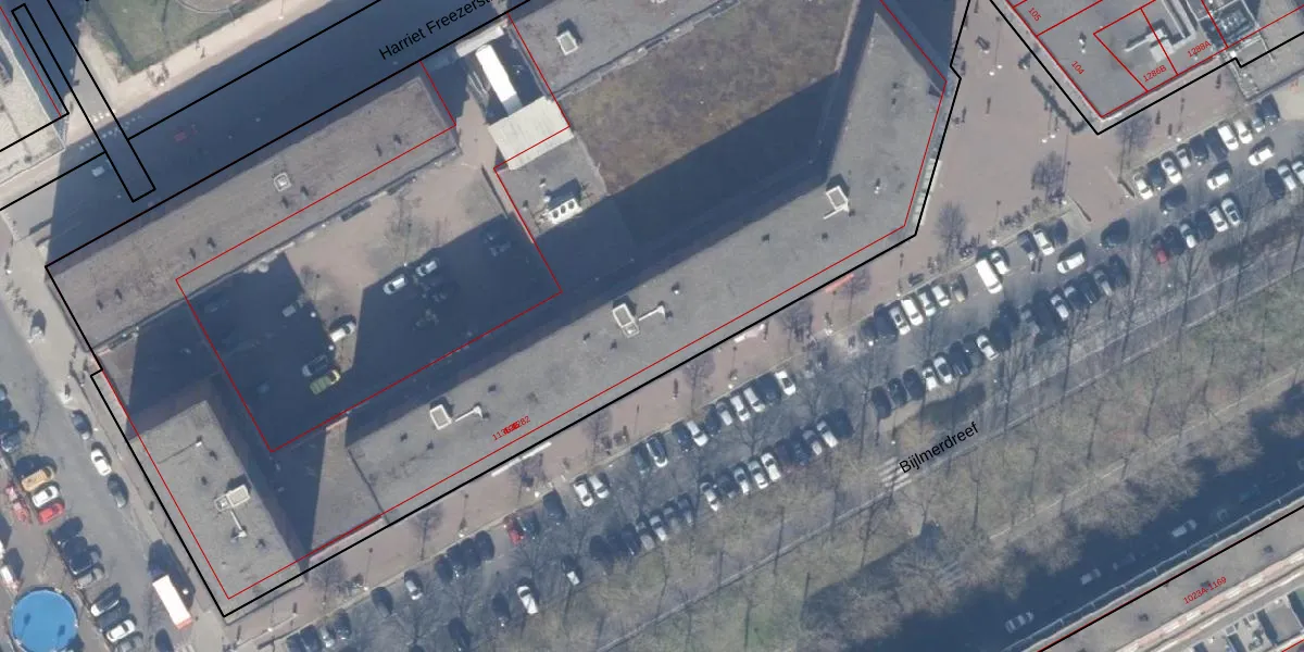 Het perceel waarop Bijlmerdreef 1194 staat heeft een oppervlakte van 1,1 ha. Dit is een zeer groot perceel. De perceeloppervlakte wordt geregistreerd door het Kadaster. Gedetailleerde informatie over de maten van dit perceel kunt u vinden in het rapport Kadastrale kaart met maatvoering van Bijlmerdreef 1194.