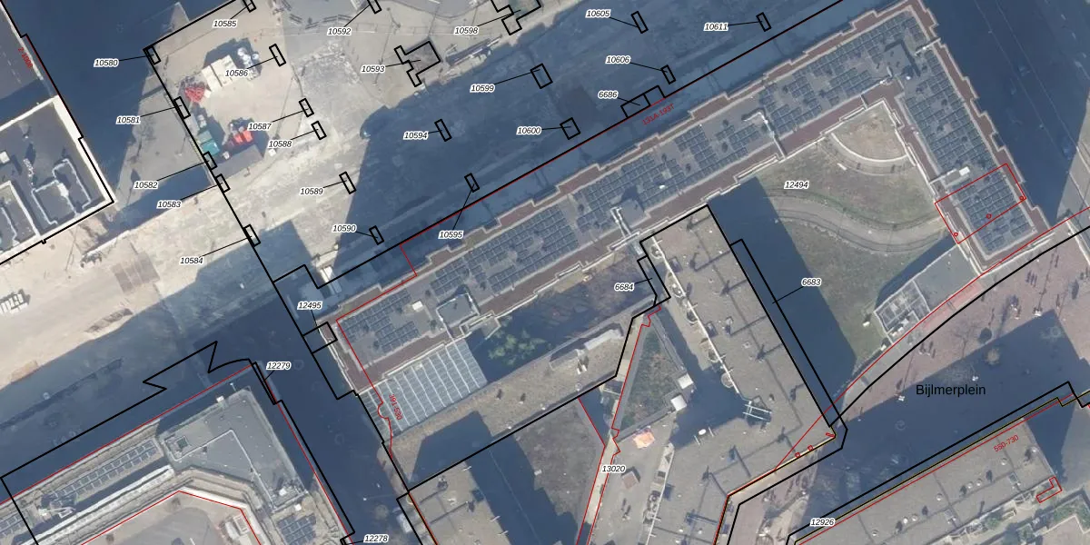 Het perceel waarop Bijlmerdreef 141-M staat heeft een oppervlakte van 7870 m². Dit is een zeer groot perceel. De perceeloppervlakte wordt geregistreerd door het Kadaster. Gedetailleerde informatie over de maten van dit perceel kunt u vinden in het rapport Kadastrale kaart met maatvoering van Bijlmerdreef 141-M.