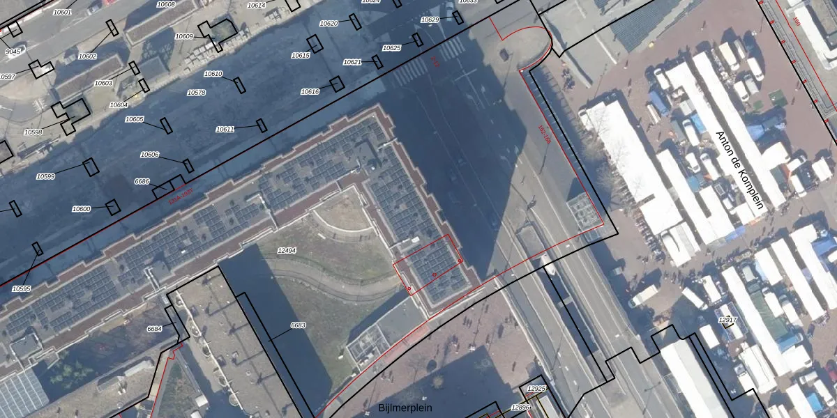 Het perceel waarop Bijlmerdreef 173-C staat heeft een oppervlakte van 7870 m². Dit is een zeer groot perceel. De perceeloppervlakte wordt geregistreerd door het Kadaster. Gedetailleerde informatie over de maten van dit perceel kunt u vinden in het rapport Kadastrale kaart met maatvoering van Bijlmerdreef 173-C.