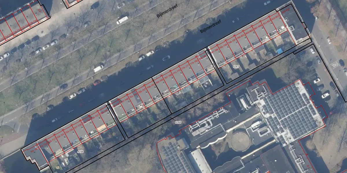 Het perceel waarop Bijlmerdreef 769 staat heeft een oppervlakte van 2157 m². Dit is een zeer groot perceel. De perceeloppervlakte wordt geregistreerd door het Kadaster. Gedetailleerde informatie over de maten van dit perceel kunt u vinden in het rapport Kadastrale kaart met maatvoering van Bijlmerdreef 769.