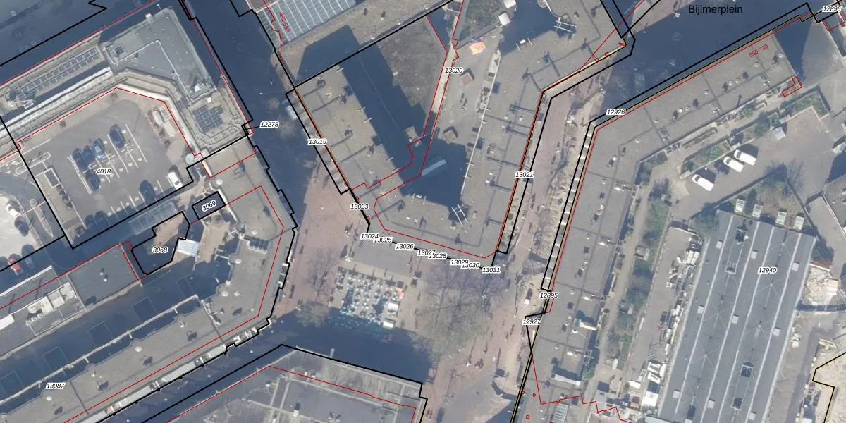 Bijlmerplein 437 is gelegen op kadastraal perceel WPK02L13020. Deze kadastrale aanduiding is uniek en wordt gebruikt door het Kadaster om eigendomsrechten en andere zakelijke rechten vast te leggen. Het perceel maakt onderdeel uit van de kadastrale gemeente Weesperkarspel.